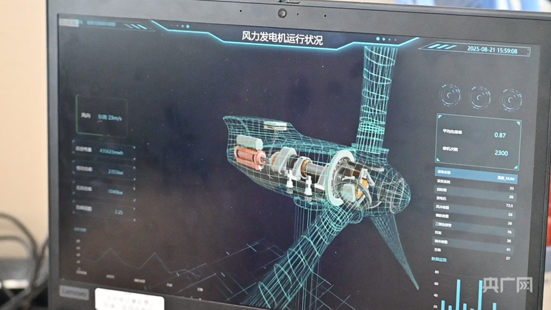 在美林數據西安總部辦公區,電腦進入業務數據系統后,遠在千里之外的大型風力發電機運行的實時動態,一目了然。