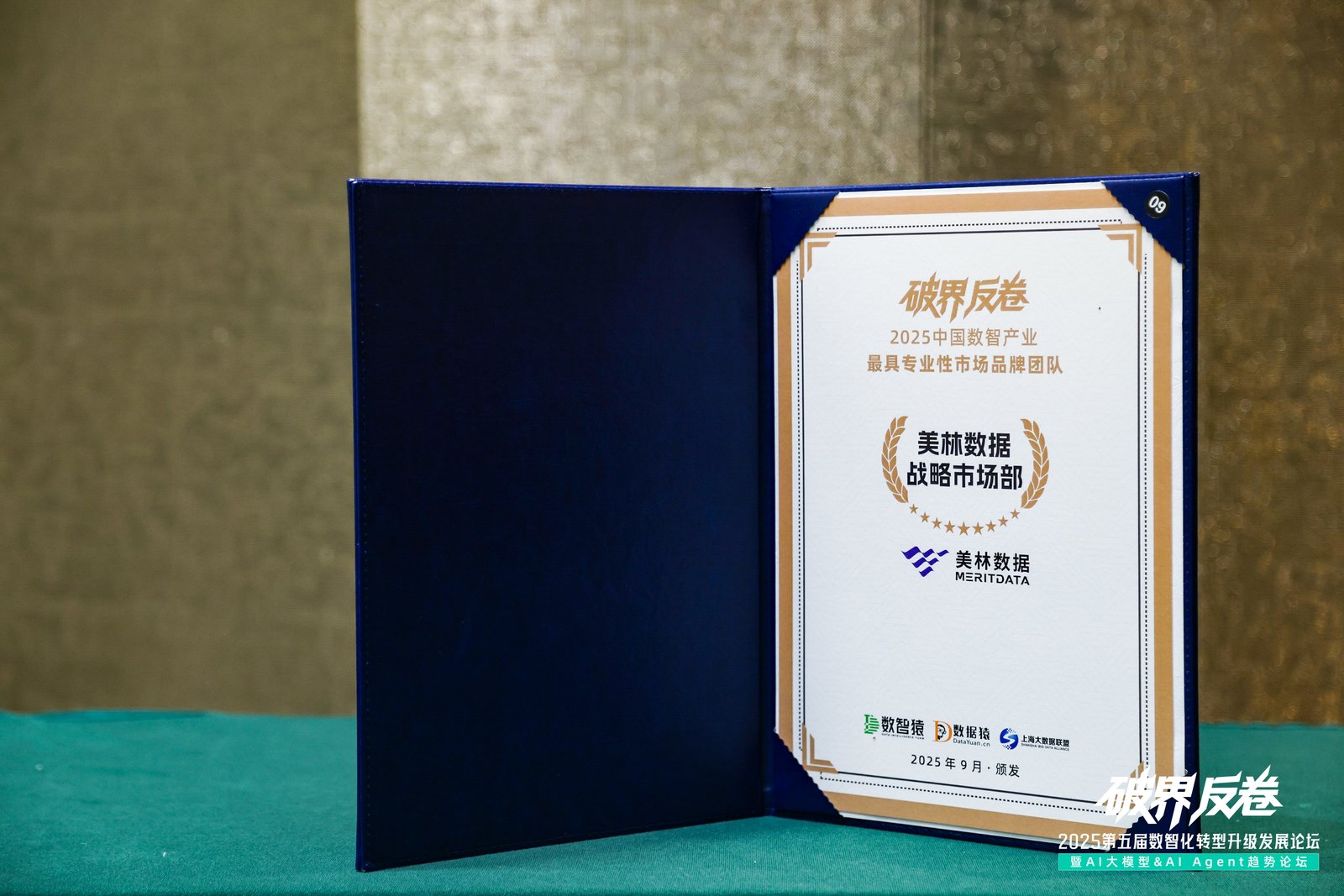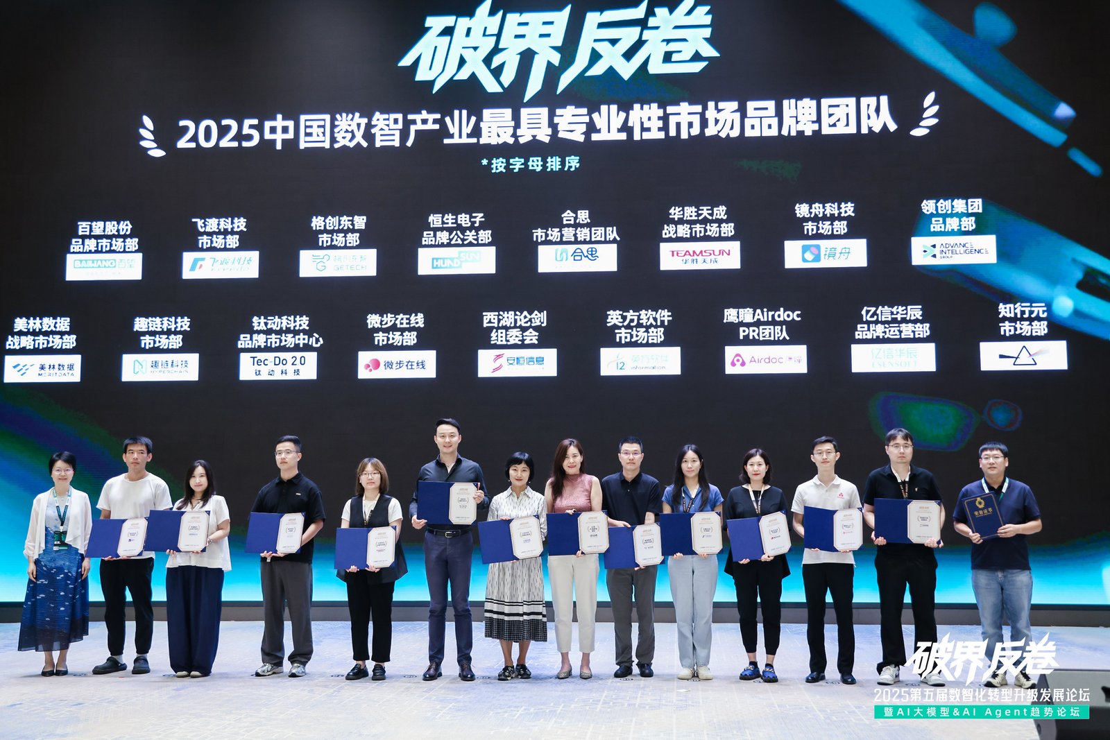其中,會議現場發布了《2025中國數智產業最具專業性市場品牌團隊》獎項。美林數據戰略市場部成功入選,為業界呈現出了一家典型優秀企業的“大市場團隊”,即市場、品牌、公關等部門的杰出表現范式。