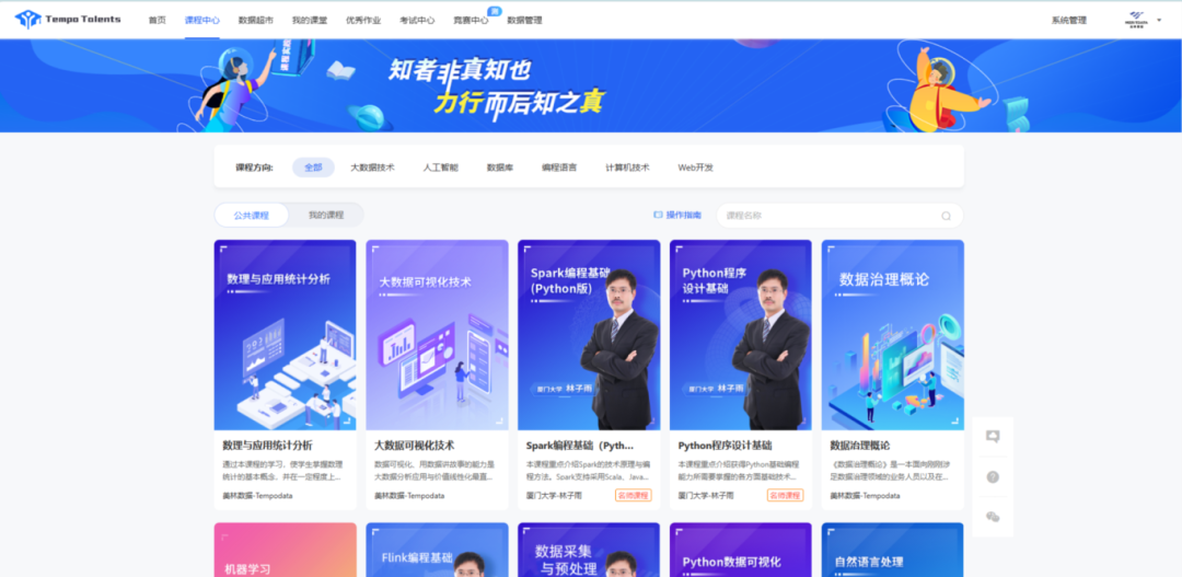 美林數據是一家專注于大數據技術的公司,深諳行業對專業人才的迫切需求及其所需的核心技能,這正可以與高校的大數據類專業的培養目標相匹配。因此,美林數據以崗位能力需求與高校學科發展以及人才培養目標精準匹配為核心,聯合高校教學名師與行業資深工程師共同規劃與開發專業課程體系,打造滿足多學科、多方向的專業課程資源庫。平臺提供大數據技術、人工智能、數據庫、編程語言等多個方向的專業課程,滿足不同層次、不同專業的大數據人才培養需求。